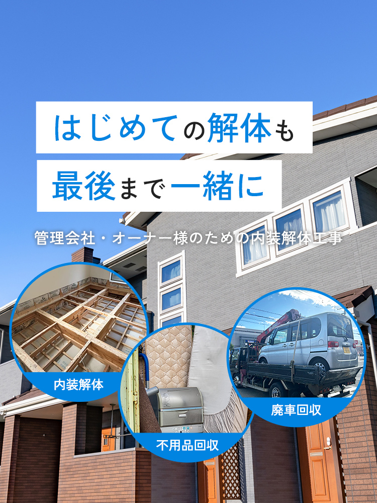 不用品回収や遺品整理、廃車回収、解体後の整地まで、工程全体を見据えた対応が可能です。