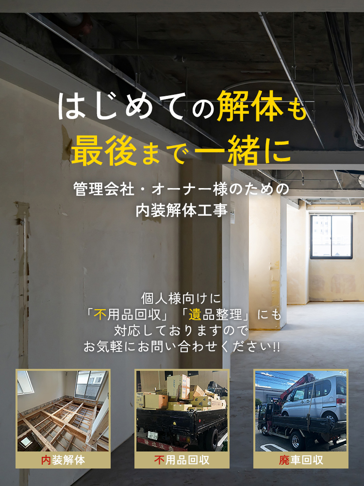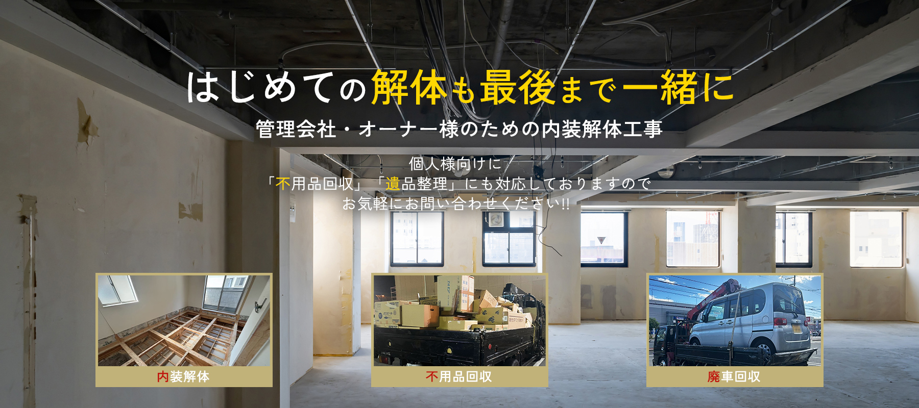 内装解体を主軸に、現場に必要な業務を一貫対応。